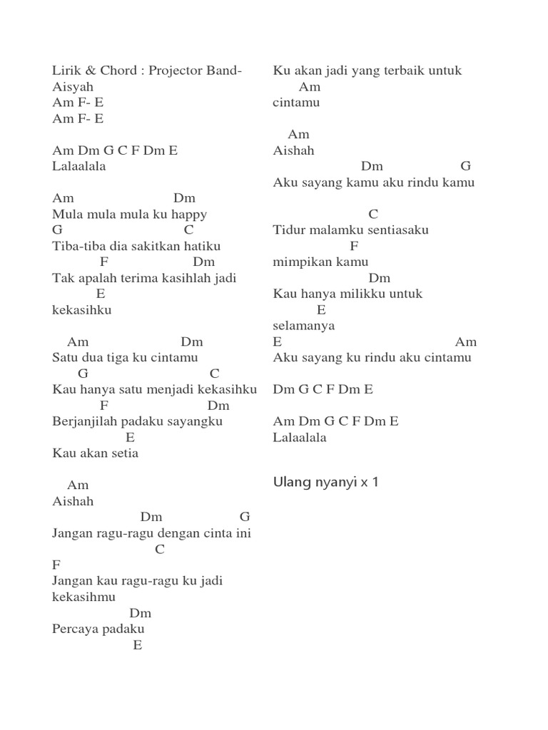 Savesave chord lagu raya for later. ★ download mp3 lagu aisyah chord gratis, ada 20 daftar lagu sia yang bisa anda download. Power chord definition chord consisting of only the root note of the chord and the fifth interval, usually played on electric guitar, and ty. Lagu aisyah chord mp3 download at 320kbps high quality. Kenapa lagu ini banyak disenangi, pastinya selain meceritakan romantisnya cinta aisyah dengan nabi, tentunya disini kita bisa mengambil hikmah. C f bukan persis novel mula benci jadi rindu dm kau istri tercinta. C indonesia tanah airku c g tanah tumpah darahku g disanalah aku berdiri g c jadi pandu ibuku c indonesia kebangsaanku f bangsa dan tanah airku c marilah kita berseru g c indonesia bersatu. F dm dia aisyah putri abu bakar. D g untuk indonesia raya c indonesia raya. reff: em am aisyah telah pergi. Em g b c bangsa dan tanah air ku am bm c marilah kita berse ru d g indonesia bersatu. Terlepas kontroversial tersebut, inilah lirik lagu aisyah istri rasulullah versi cover sabyan lengkap dengan chord gitar. If you have a link to your intellectual property, let us.