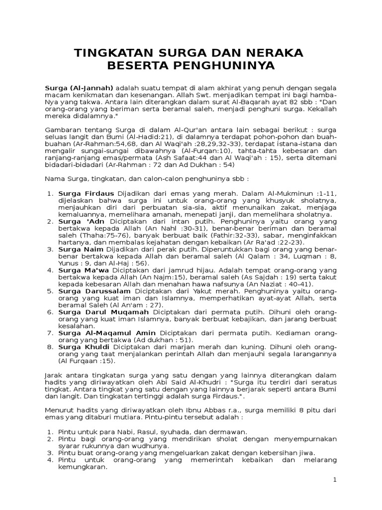 Di dalam surga, para penghuninya tidak akan mendapatkan kesusahan sedikitpun. It is compatible with all android devices (required android 4.0+) and can also be able to install on pc & mac, you might need an android emulator such as bluestacks, andy os, koplayer. Syurga merupakan suatu tempat di alam akhirat untuk umat manusia yang selama hidup di dunia melakukan atau mengerjakan amal kebajikan. Tingkat muttaqin adalah tingkatan ketakwaan. Inilah surga tingkatan tertinggi yang seharusnya setiap muslim menjadikannya sebagai target dan cita cita tertinggi untuk di raih, siapa saja penghuninya?.